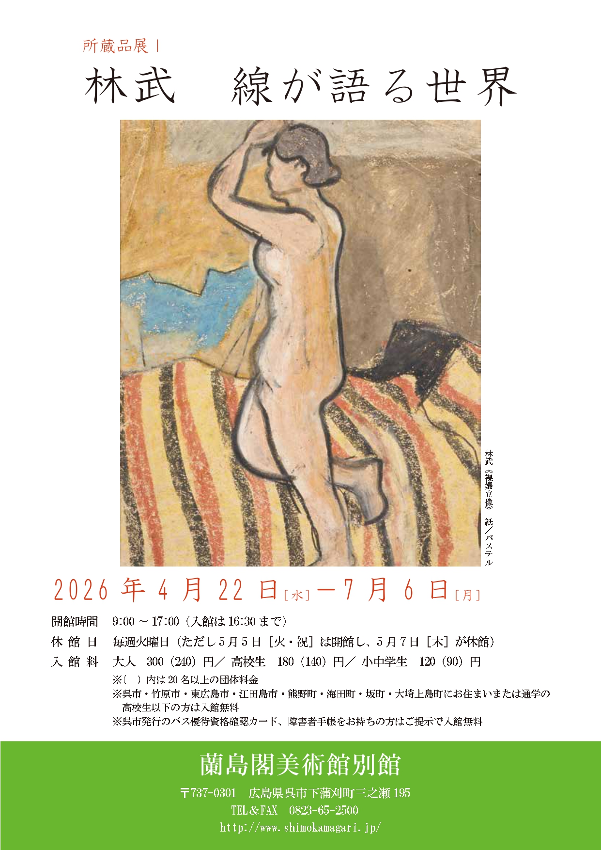 本展ではコンテや鉛筆、パステルで制作された素描作品を中心に、林武の線の魅力を紹介します。素描家としても高く評価された林は、線描による様々な表現を試みました。そのなかから、自由かつのびのびとした線で運動の最中にある人物や波立つ海を捉えた作品、女性の身体の曲線が印象的な裸婦像などを展覧します。こうした作品を通して林武の線が語る世界をお楽しみください。