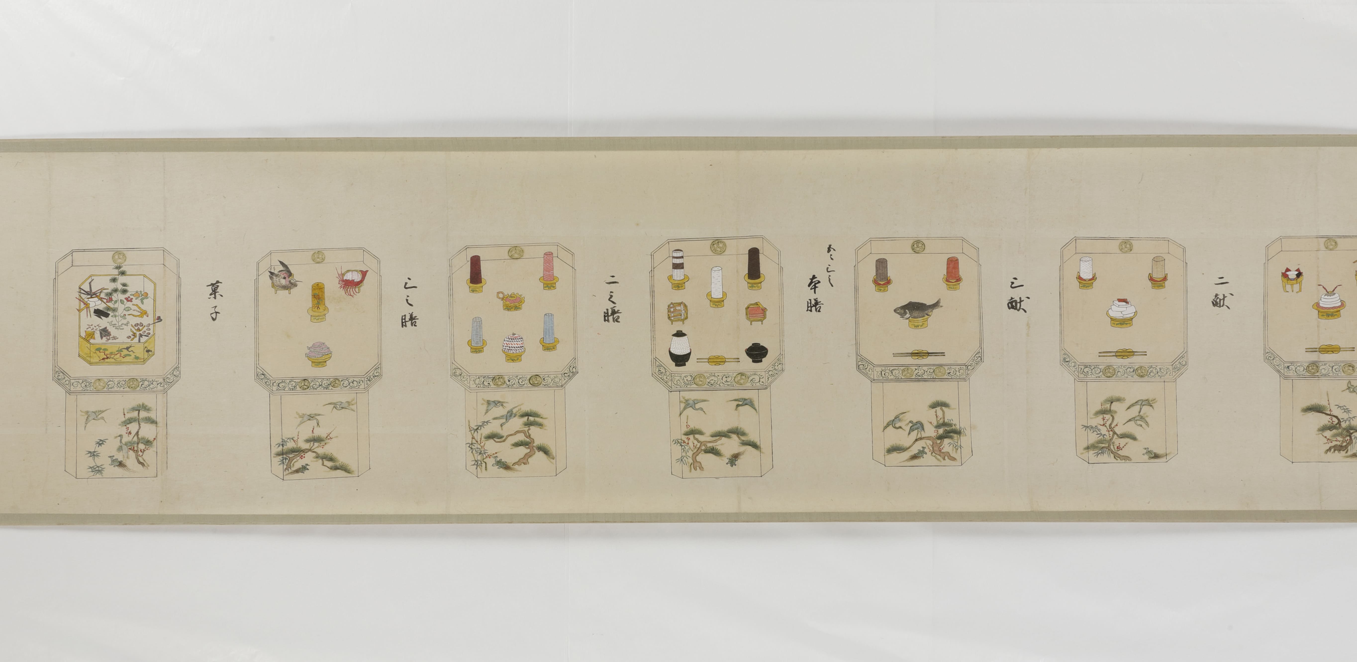 「祝言膳部次第」(部分) 寛永5(1628)年 紙本著色 1巻
