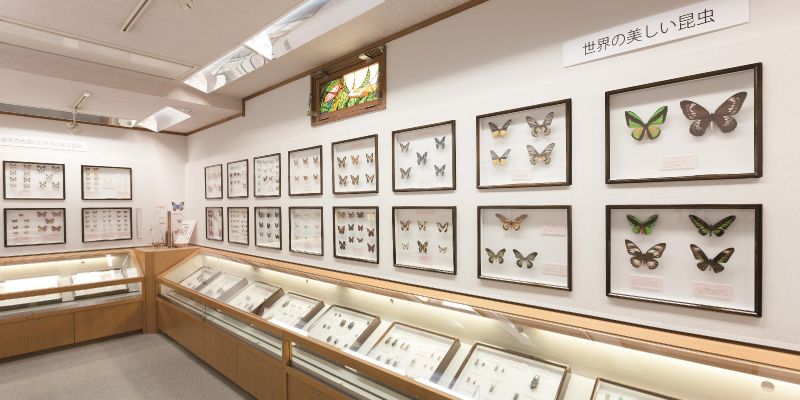 昆虫の家では、下蒲刈に生息する多種多様な昆虫の標本や微小昆虫はもちろん、日本の美しいトンボ、世界の美しい昆虫、 広島県の絶滅の恐れのある昆虫をテーマに展示しています。また夏休みには、昆虫の標本作りも行えるイベントも行っています。